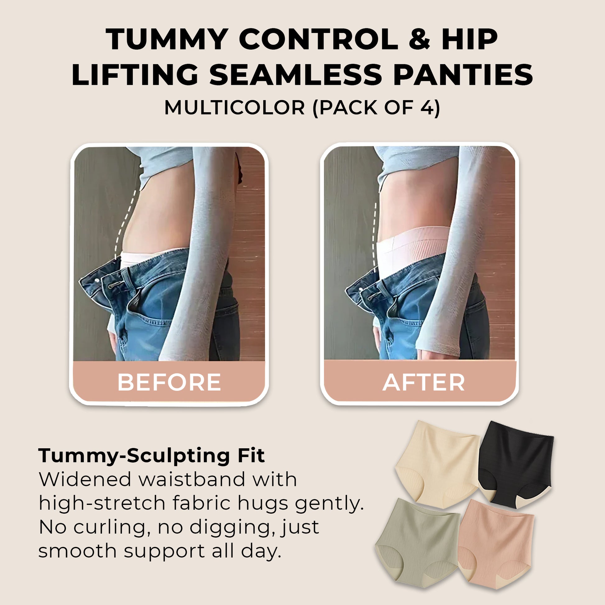 💖 No Rolling or Pinching – Flexible waistband that stays in place